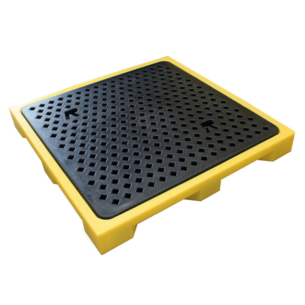A low profile 4-drum floor tray which is only 150mm high and has additional bracing built into the base to create a rigid platform for the rotationally moulded grid mesh deck. This floor tray will accommodate up to 4 x 205ltr drums and has a UDL (Uniform Distributed Load) of 2000kg.