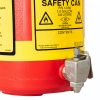 OVAL POLYETHYLENE SAFETY SHELF CAN, STAINLESS STEEL HARDWARE, 1 GALLON, BOTTOM SELF-CLOSE S/S FAUCET, RED