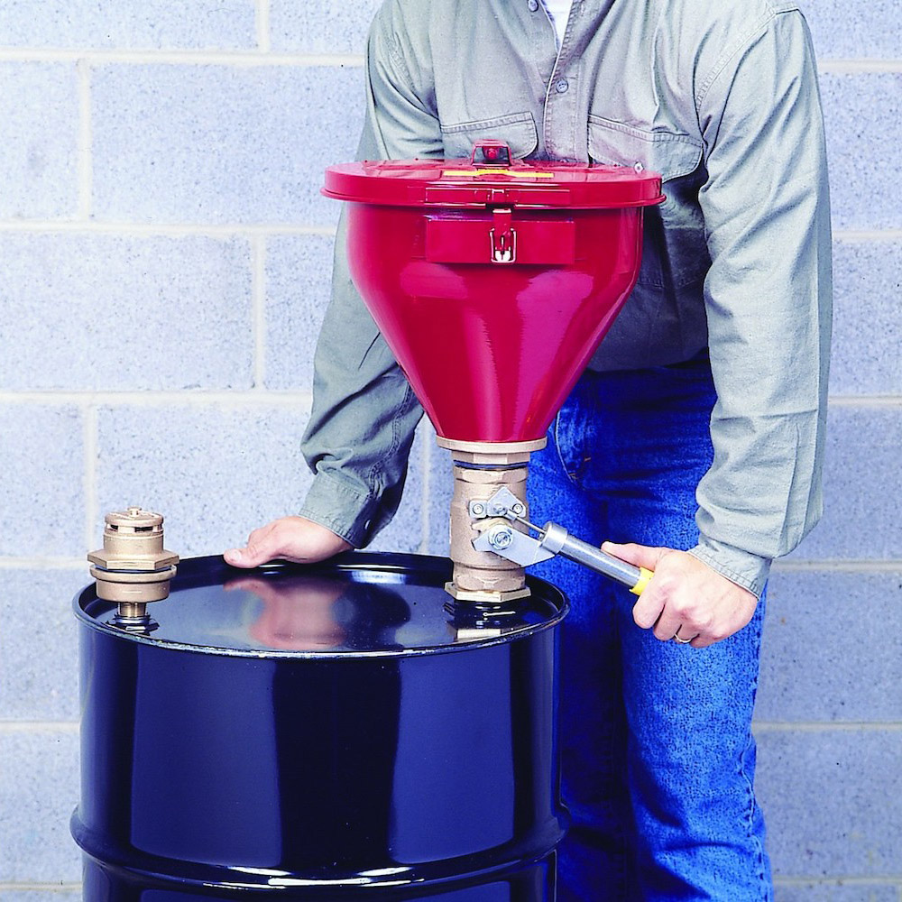 STEEL DRUM FUNNEL #08207, SELF-CLOSE COVER, TIP-OVER PROTECTION KIT FOR 2 INCH DRUM BUNG
