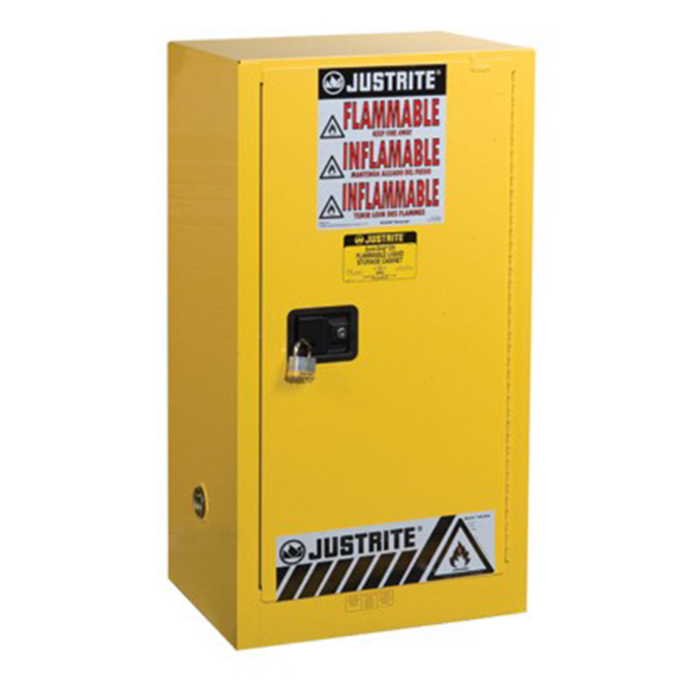 Compac Safety Cabinets fit almost anywhere and provide protection even where space is at a premium. These cabinets are ideal when storing lesser quantities of flammable liquids at a workstation or adding to existing storage capacities. Only 23-1/4 in. (591-mm) wide, they hold a full 12- or 15-gallons (45- or 57-L) of flammables and have all the great features and benefits of our classic cabinets as outlined below.