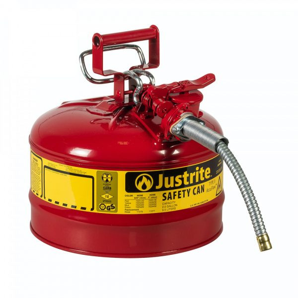 Certified by FM, UL/ULC, and TÜV, Justrite safety cans also meet OSHA and NFPA requirements, and come with a ten-year warranty.