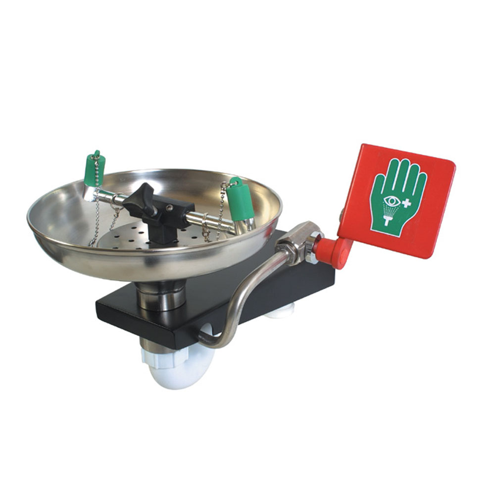 Open 316L stainless steel bowl, wall-mounted emergency eye/face wash featuring twin spray nozzles protected by dust covers. When activated via the push plate, the water jets lift off the dust covers. The eye wash diffusers are fitted with fine mesh strainers and individual flow controllers designed to give a gentle flow of aerated water. Unit is available Wall Mounted and Pedestal Mounted.